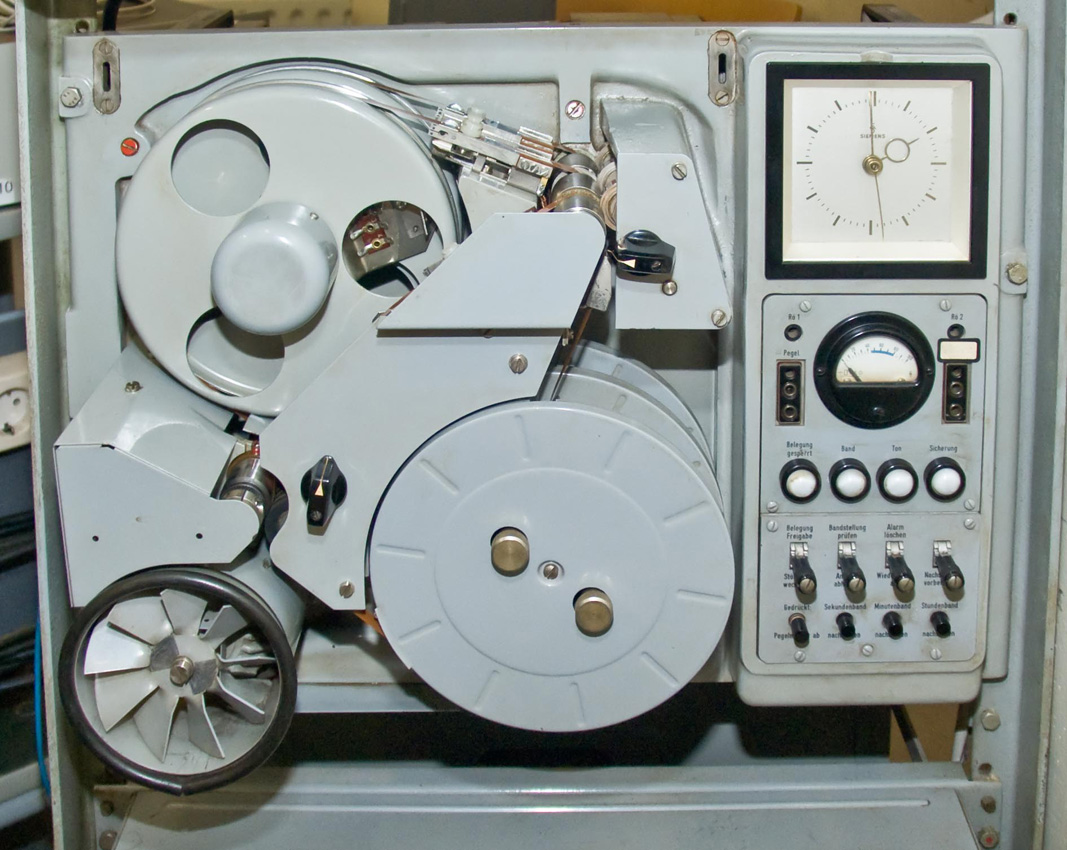 12 Deutschland 1958-2005 Magnetton-Zeitansage Großanlage von Siemens & Halske aus dem Jahre 1958 mit 3 Endlos-Tonbändern. Besprochen von Elvira Bader vom Funkamt Hamburg.
