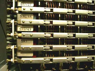 Im oberen Teil sieht man unter der Glasabdeckung den Koordinatenschalter, der die Verbindung zwischen den Teilnehmern herstellt.