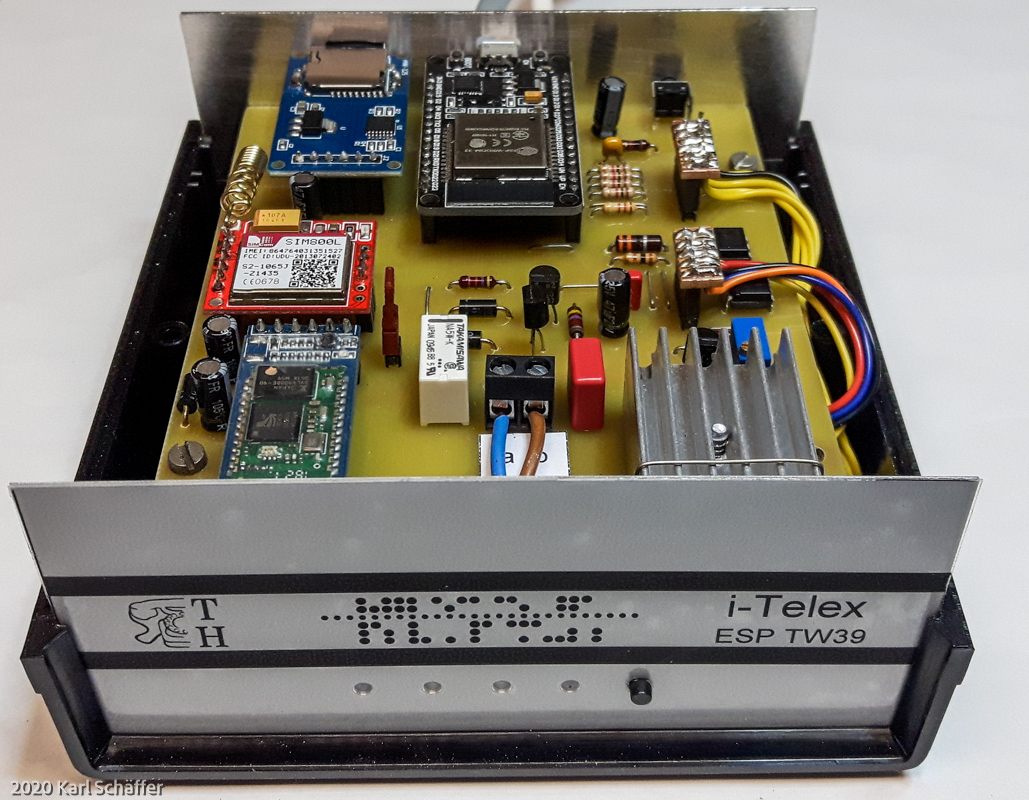 Unser Kollege Karl Schäffer hat, mit Ratschlägen aus dem Telexforum, einen Konverter gebaut, mit dem es möglich ist, auch ED1000-FS an unserer TW39-VSt zu betreiben. Dabei wird (soweit möglich) eine EDS-VSt simuliert. Die Platine hierfür hat er als Einzelstück hergestellt und in ein AGT-Gehäuse eingebaut. ADO8 und Schuko-Steckdose wurden dabei an den richtigen Stellen auf der Platine übernommen.