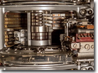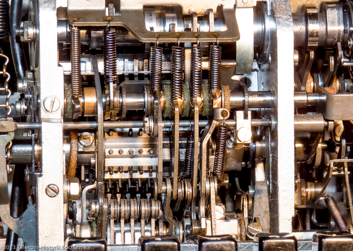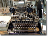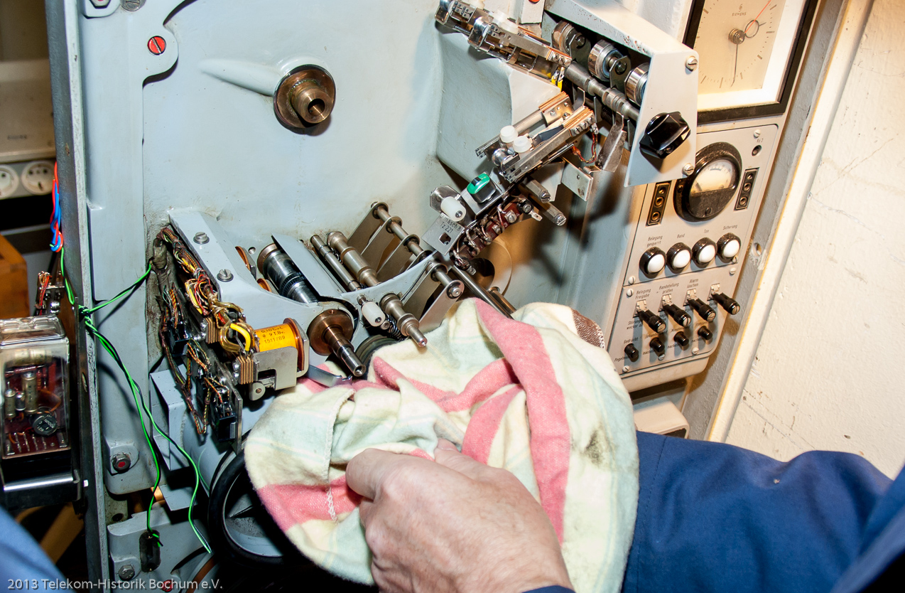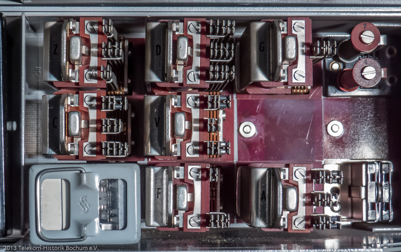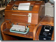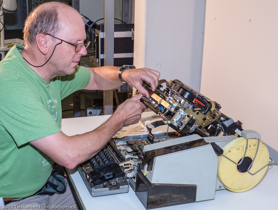 Unsere 8 Fernschreiber zum ausprobieren und rechts außen unser i-Telex