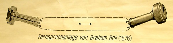 hatte schließlich im Jahre 1876 Erfolg. Seine Anordnung aus einer Membrane, einem Dauermagneten und einer Spule erzeugte einen Strom, der den Schallwellen entsprach, die auf die Membrane trafen. Eine zweite, gleiche Anordnung wandelte den Strom wieder in Schallwellen um, so dass man über eine größere Entfernung sprechen konnte. Anders als Phillip Reis erkannte Bell die wirtschaftliche Bedeutung seiner Erfindung und ließ sie sofort zum Patent anmelden. Dem folgte bald ein erbitterter Patentstreit, in über 600 Prozessen wurde Bell verwickelt, die später sogar das politische Leben in den Vereinigten Staaten erschüttern sollten. Bell gründete die Bell Telephone and Telegraph Company, aus der schon1885 die American Telephone and Telegraph Company (AT&T) hervorging, die noch heute eine der größten Telefongesellschaften ist.