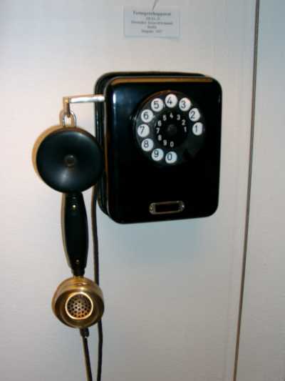 Merkmale: die Einsprache am Mikrofon ist aus Messing, die Glocken für den Wecker sind nach Innen verlegt worden.